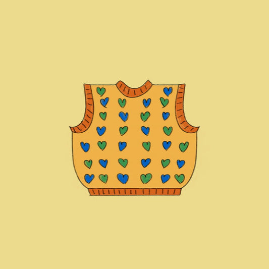 Ein lustiges und romantisches ärmelloses Design mit Intarsienherzen. Verspielt und grafisch, ideal, um spielerisch Intarsien zu erlernen.